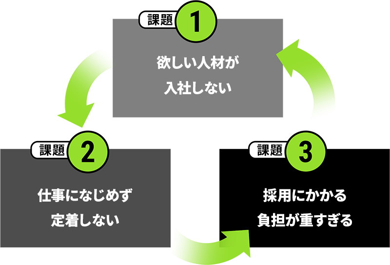 経営者、採用担当者のみなさま、こんなお悩みを抱えていませんか?